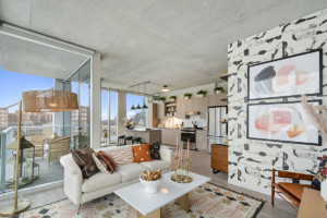 Fully accessible and customized for any workout routine, the fitness center and indoor/outdoor yoga studio feature a flavored water station, Le Tour De France Bikes with pairing fitness wrist bands, a Crossfit Rig, as well as Free Motion white cardio equipment. Afterwards, residents can cool down on the outdoor terrace that includes landscaped greenery, a community garden, and calming Fountain Square views.